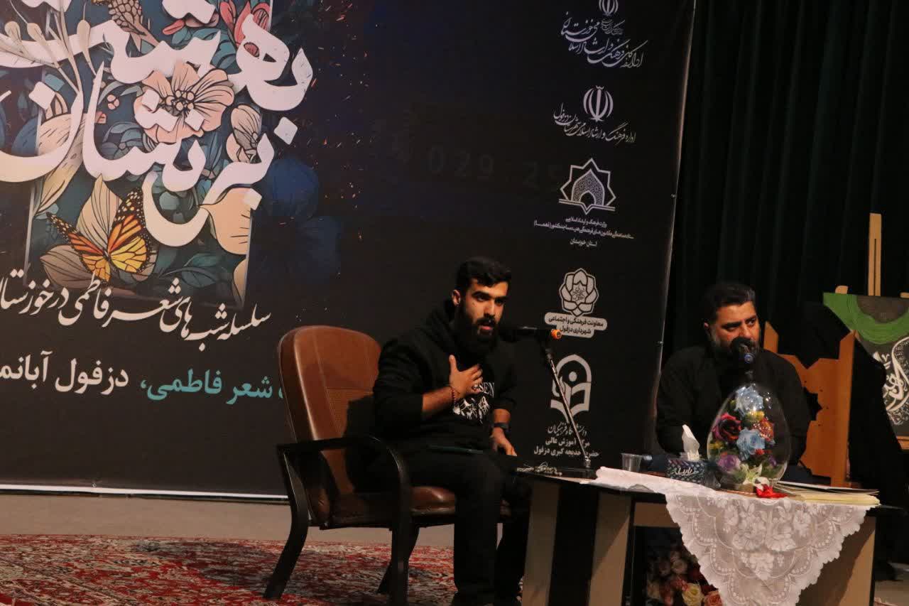 به گزارش روابط عمومی ستاد هماهنگی کانون‌های فرهنگی هنری مساجد خوزستان، به‌مناسبت ایام فاطمیه و شهادت حضرت فاطمه زهرا (س)، شب شعر فاطمی با حضور جمعی از شاعران آئینی، مدیران و اعضای کانون‌های فرهنگی هنری مساجد و علاقه‌مندان به فرهنگ و هنر در شهرستان دزفول برگزار شد.